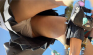 真〓031 【夢の国】声掛けフロント突風めくれ。アトラクション一緒に乗っちゃった。【HONEYsPOT】